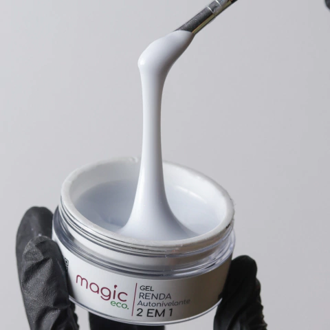 Gel autonivelante de tonalidade branco renda indicado para a técnica de unhas de gel e fibra.